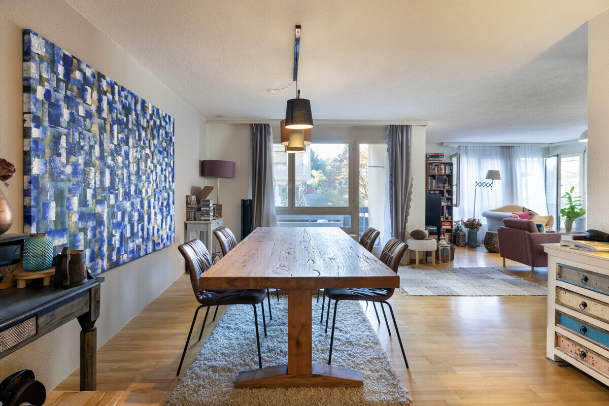 Ein separates Kellerabteil gehört zur Wohnung, die gemeinschaftliche Waschküche und der Trockenraum befinden sich im Untergeschoss. Zwei Tiefgaragenplätze runden das attraktive Angebot ab. Die Lage im Quartier Hirslanden vereint ruhiges Wohnen mit städtischer Nähe – ideal für Menschen, die ein grünes Umfeld und kurze Wege in die Stadt schätzen.