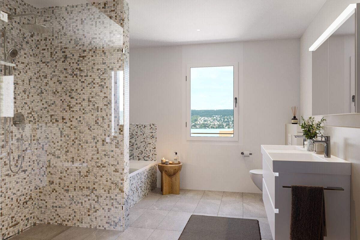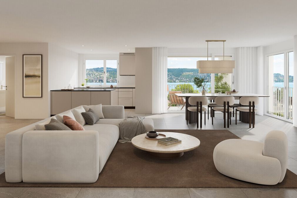 Mitten im Zentrum von Rüschlikon entstehen dreizehn moderne Neubauwohnungen mit durchdachten Grundrissen und hochwertigem Ausbau. Das Gebäude vereint Wohnen und Gewerbe auf gelungene Weise – im Erdgeschoss belebt eine traditionsreiche Metzgerei das Quartier. Diese 2.5-Zimmer-Gartenwohnung überzeugt durch klare Raumaufteilungen, grosse Fensterflächen und stilvolle Innenausstattung. Der private Sitzplatz schafft einen schönen Aussenraum, in dem sich die Morgensonne in entspannter Atmosphäre geniessen lässt.