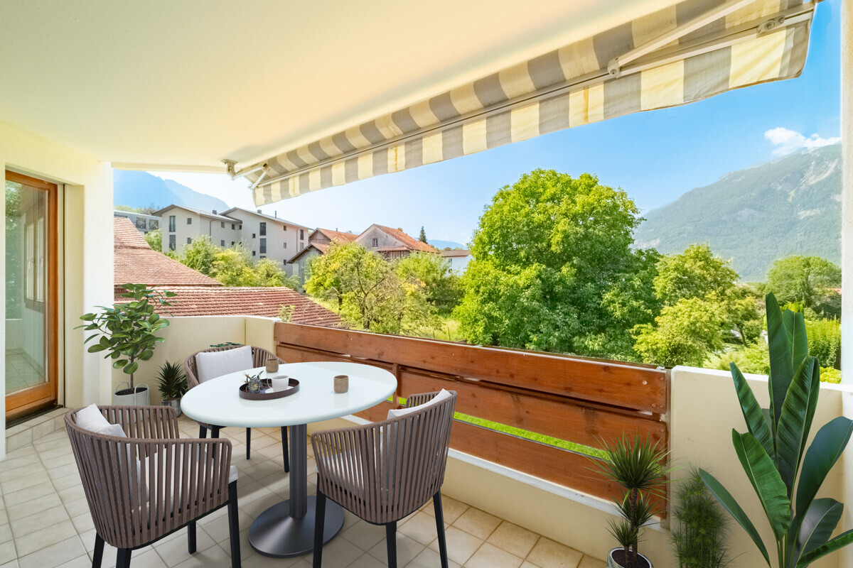 Ein Highlight ist der Balkon mit Südausrichtung. Hier geniessen Sie eine wunderschöne Aussicht auf die Berge und profitieren von einer optimalen Besonnung am Nachmittag. Die Wohnung gehört zu einer kleinen Stockwerkeigentümergemeinschaft und bietet mit gezielten Erneuerungen individuelles Gestaltungspotenzial. Ein Carport kann zusätzlich erworben werden.