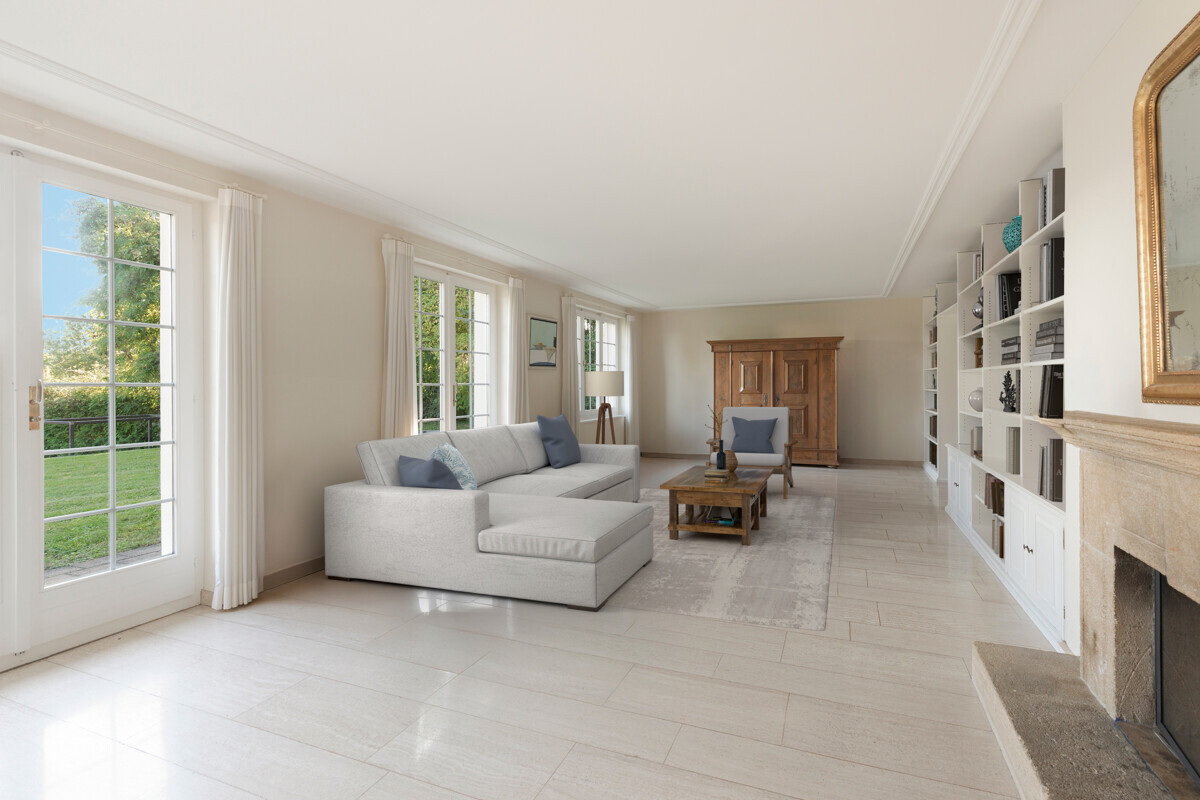 Die Villa überzeugt mit rund 350 Quadratmeter Wohnfläche, verteilt auf zehn vielseitig nutzbare Zimmer. Hochwertige Materialien, wie Naturstein und Parkett, prägen den Charakter der Räume. Die offene Galerie im Obergeschoss, die grosszügige Küche mit professioneller Ausstattung und das Wohnzimmer mit Cheminée schaffen ein stimmiges Raumgefühl mit viel Atmosphäre. Der Ausbau ist gepflegt, einzelne Elemente dürfen stilvoll aktualisiert werden.