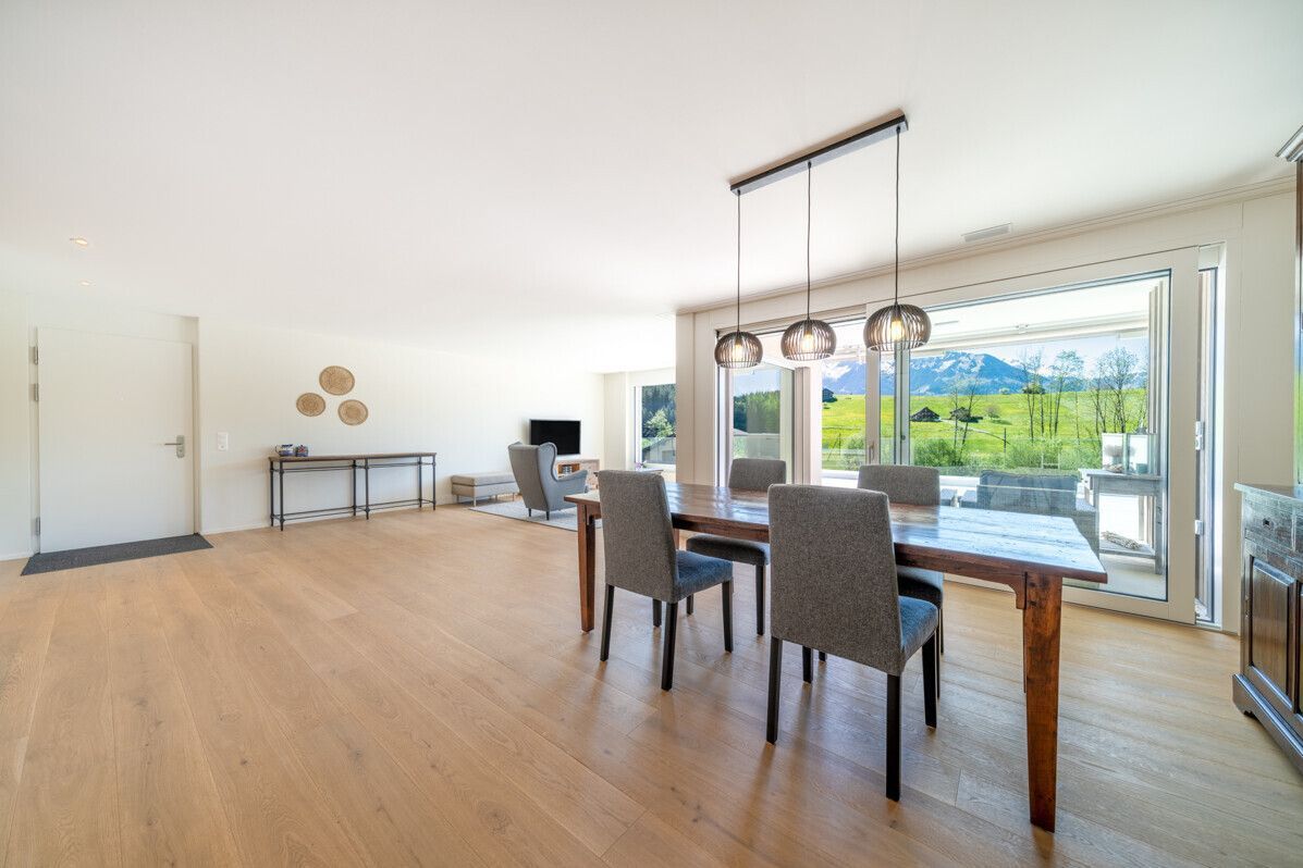 Diese exklusive Terrassenwohnung liegt an sonniger Hanglage oberhalb von Sarnen und beeindruckt mit einem atemberaubenden Panorama über die umliegenden Berge und Täler. Auf einer Ebene grosszügig konzipiert, vereint sie modernen Wohnkomfort mit zeitloser Eleganz – ideal für Menschen, die das Aussergewöhnliche schätzen. Klare Architektur, lichtdurchflutete Räume und natürliche Materialien schaffen eine Atmosphäre, die zum Entspannen und Wohlfühlen einlädt.
