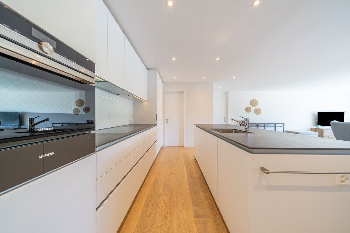 Der offene Wohn- und Essbereich mit integrierter Designküche führt direkt auf die weitläufige Terrasse mit unvergleichlicher Aussicht. Der Masterbereich begeistert mit Bad en suite und Ankleide, während drei weitere Zimmer flexibel als Schlafzimmer, Büro oder Gästezimmer genutzt werden können. Hochwertige Materialien, moderne Bäder, viel Stauraum und eine durchdachte Raumaufteilung unterstreichen den exklusiven Charakter dieser Wohnung. Zwei Tiefgaragenplätze sowie ein grosszügiges Kellerabteil sorgen für zusätzlichen Komfort und Funktionalität.