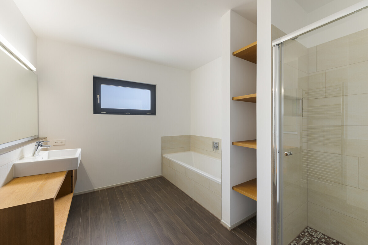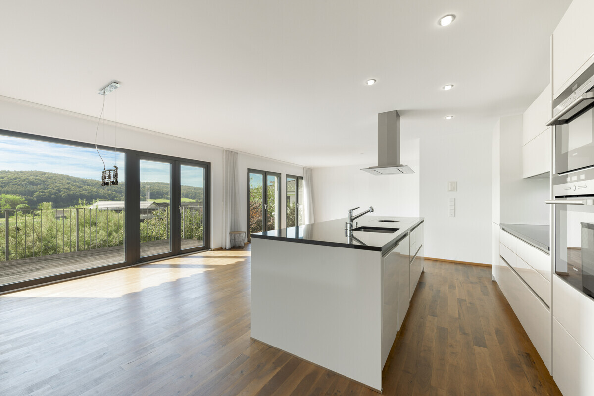Die Wohnungen mit grosszügigen Zimmern zeichnen sich durch eine Ausstattung aus, wie man sie sonst in gehobenen Einfamilienhäusern findet. Edles Echtholzparkett, Feinsteinzeugplatten und Bisazza-Mosaike in den Bädern schaffen ein stimmiges Ambiente. In der Küche des Erdgeschosses sorgen Icemaker und Induktions-Wok für zusätzliche Raffinesse, während sorgfältige Details im Innen- und Aussenbereich die hohe Qualität betonen.