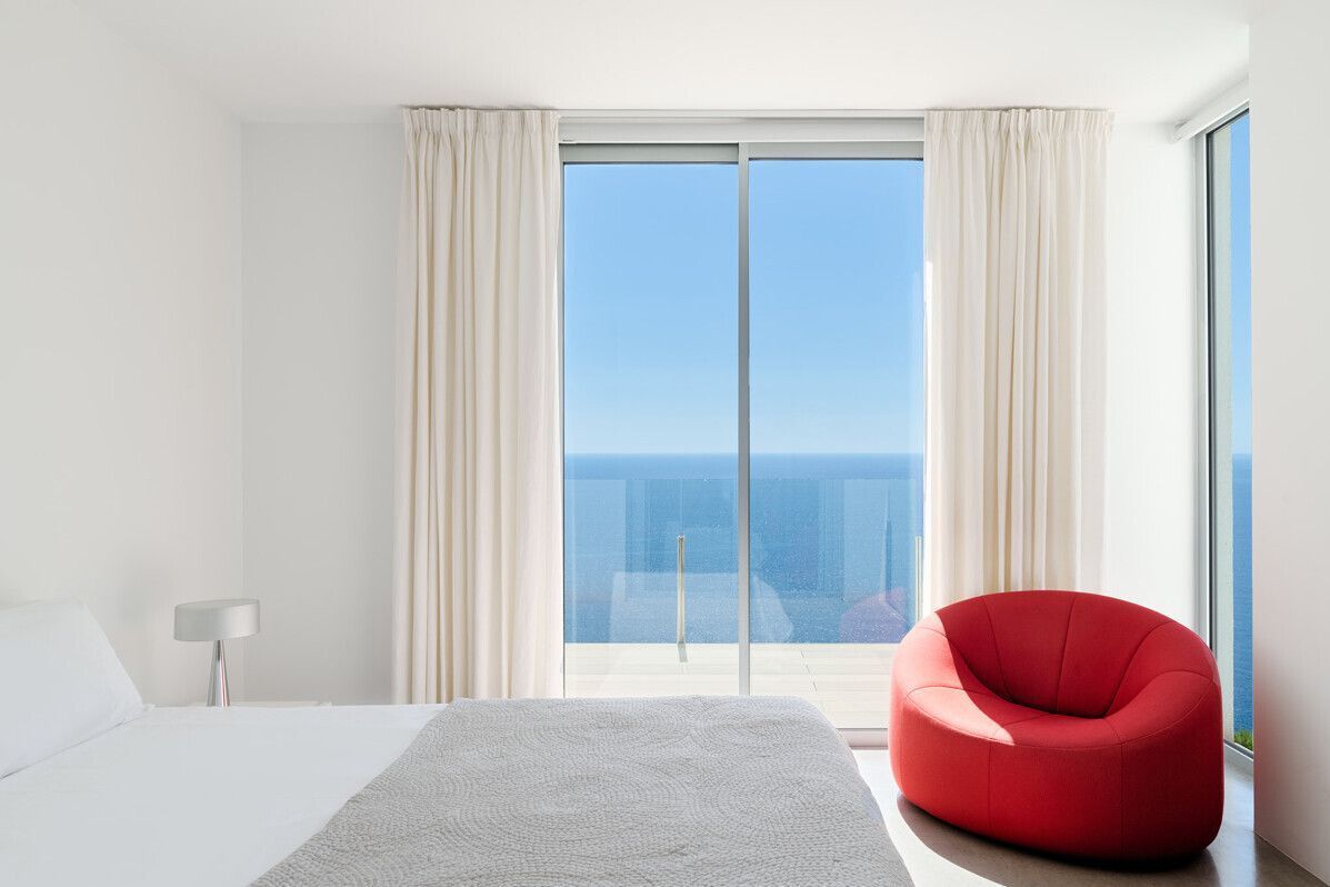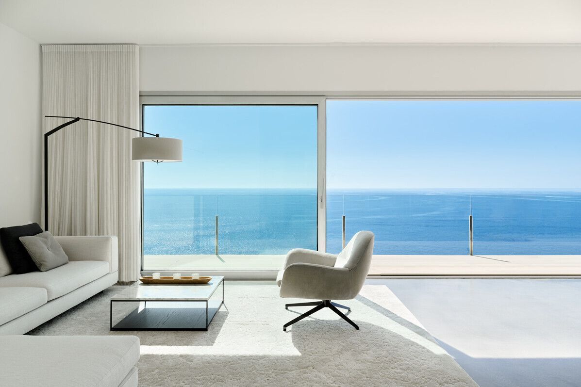 Das Design betont die Verbindung zur Küste, indem raumhohe Fenster den Horizont einrahmen. Hochwertige Bauweise verbunden mit viel Komfort, moderner Haustechnik und Energieeffizienz mit Solarkollektoren. Die offene Küche und der Essbereich führen in einen grossen Wohnbereich, der auf die überdachten Lounges und Terrassen führt.