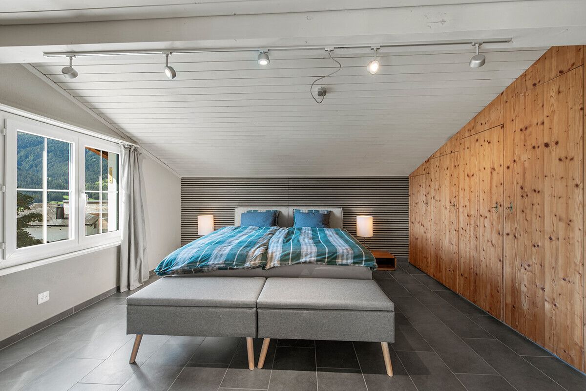 Ergänzt wird das Raumangebot durch zwei separate Einliegerwohnungen mit je 2.5 Zimmern. Beide verfügen über eigene Balkone und sind aktuell vermietet – eine interessante Möglichkeit zur Erzielung von Mieteinnahmen oder zur Nutzung als Gästebereich. Die Aussenflächen sind pflegeleicht gestaltet. Der terrassierte Garten schafft verschiedene Rückzugsorte unter freiem Himmel und lädt zum Verweilen und Sonnenbaden ein. Zur Liegenschaft gehören ein Aussenabstellplatz sowie ein Carport mit zwei gedeckten Parkplätzen.