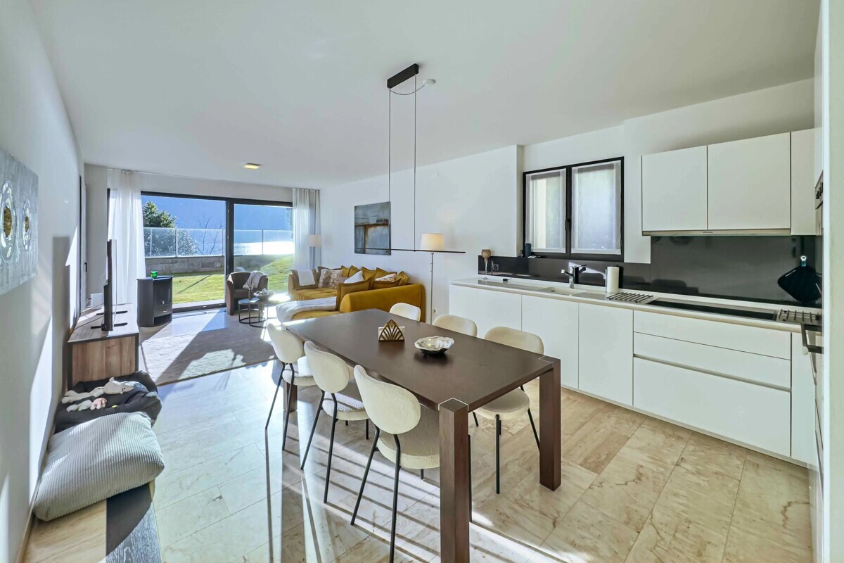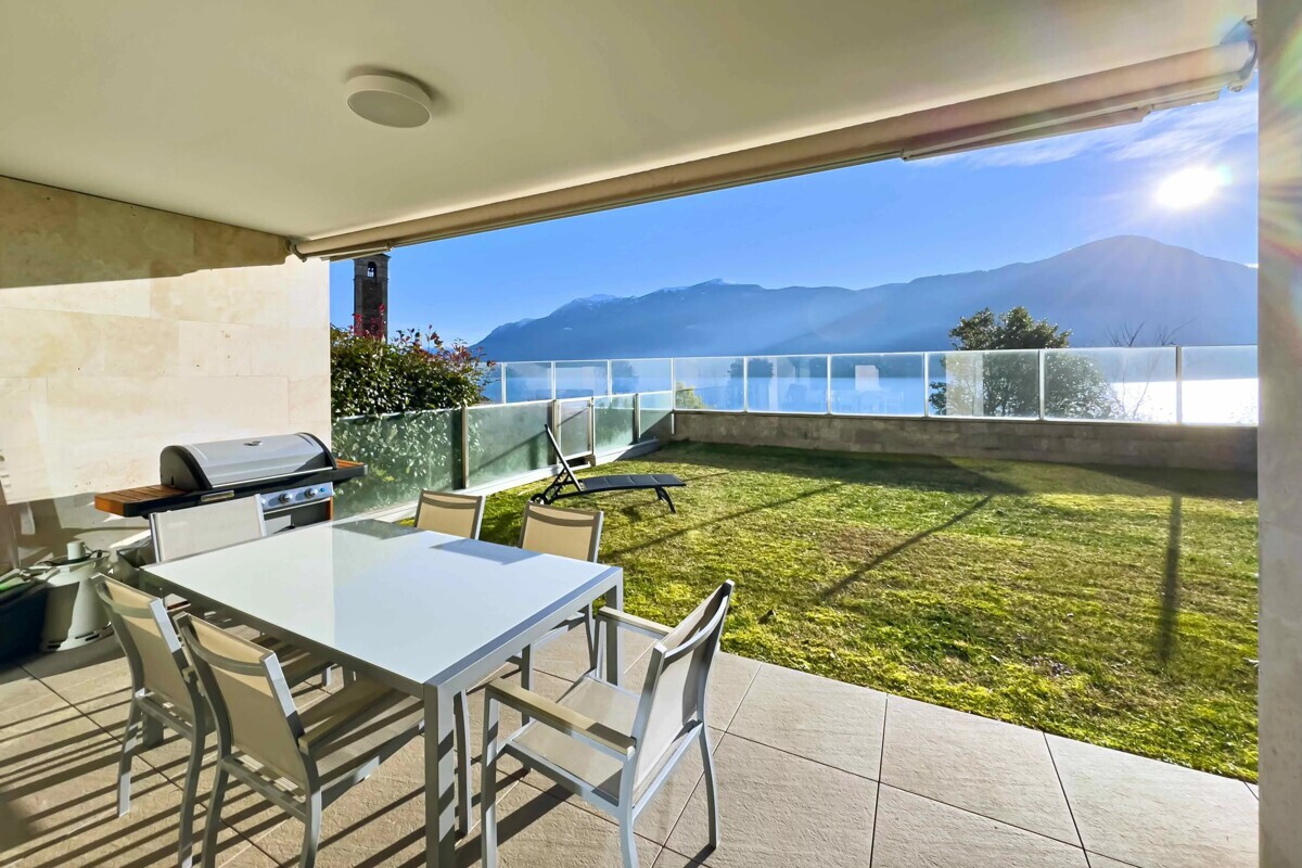 Diese moderne Wohnung mit privatem Garten befindet sich in der exklusiven Wohnanlage „Beach Residences“ in Brissago und eignet sich ideal auch als Zweitwohnsitz.