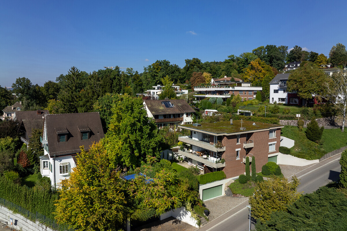 Imposing mansions stand proudly alongside handsome residential developments with expansive gardens on both sides of the imposing Küsnacht ridge, toward the Itschnach and Allmend subdivisions at the upper elevations; the Goldbach and Heslibach subdivisions are equally verdant and well-manicured. Numerous hamlets with picturesque farmsteads dot the landscape from Küsnachter Berg to the Forch Pass.