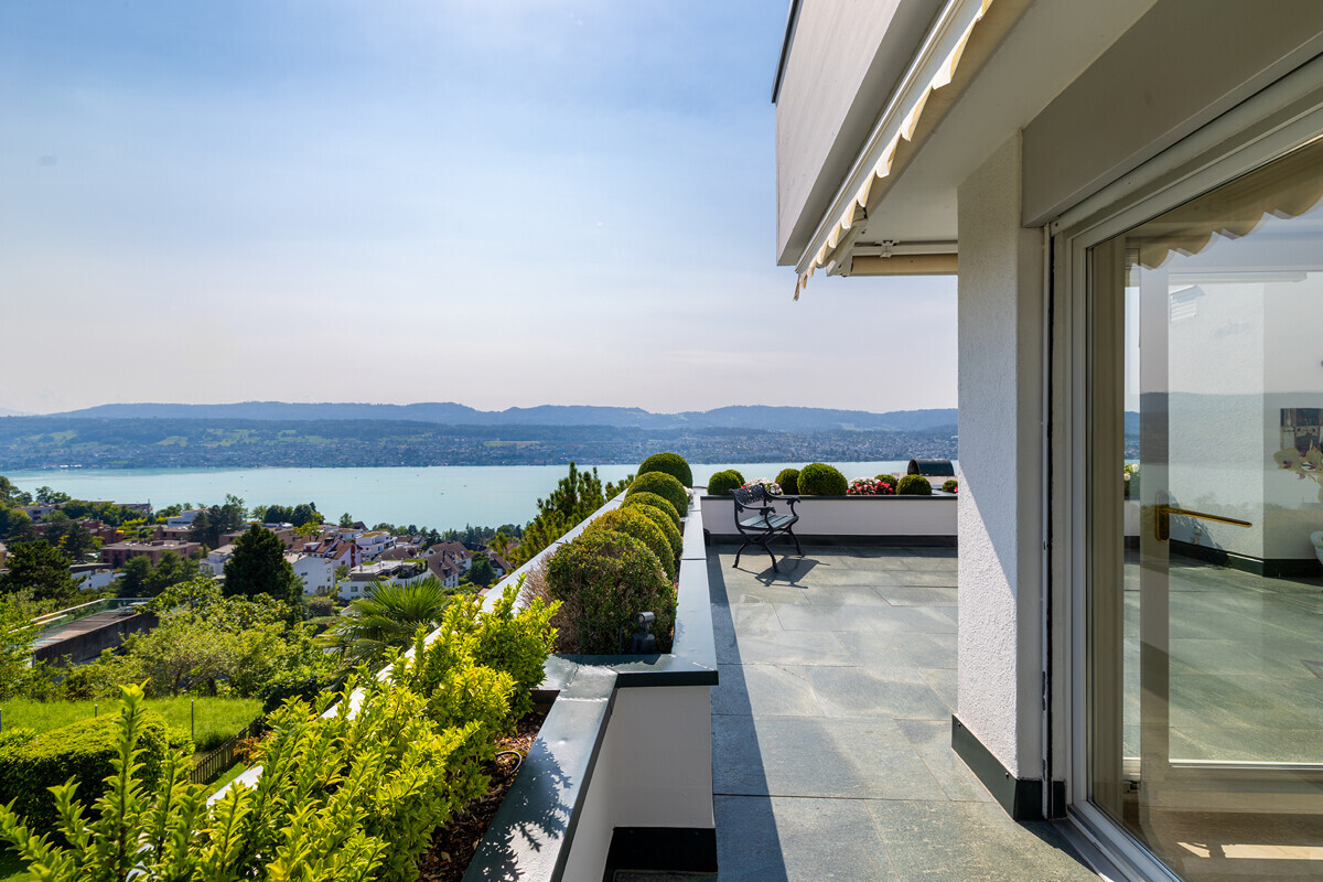 [objektbeschreibung] => This duplex terrace apartment presents approximately 172 sqm of living space and enjoys a prime hillside position above Erlenbach. From its elevated vantage point, you benefit from a spectacular view across Lake Zurich, the Alps and as far as the city basin.