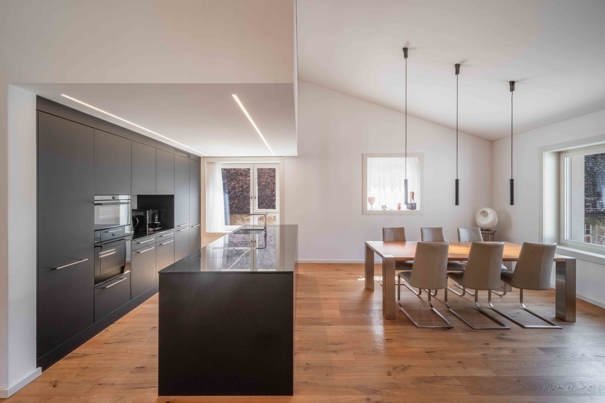 [objektbeschreibung] => This modern and spacious duplex penthouse unit in Haldenstein comes with everything the heart desires. The apartment spans two floors and is ideal for discerning residents. Three welcoming bedrooms, two stylishly designed bathrooms, provide ample space and comfort. The open-plan kitchen, equipped with high-quality built-in appliances, flows seamlessly into the extensive living and dining area, creating an inviting ambience. Large windows allow plenty of light to enter and afford stunning views of the surrounding mountains. The apartment features a south-facing loggia and two garage spaces. The peaceful location in Haldenstein, close to the centre of Chur, combines proximity to the city with a rural idyll.