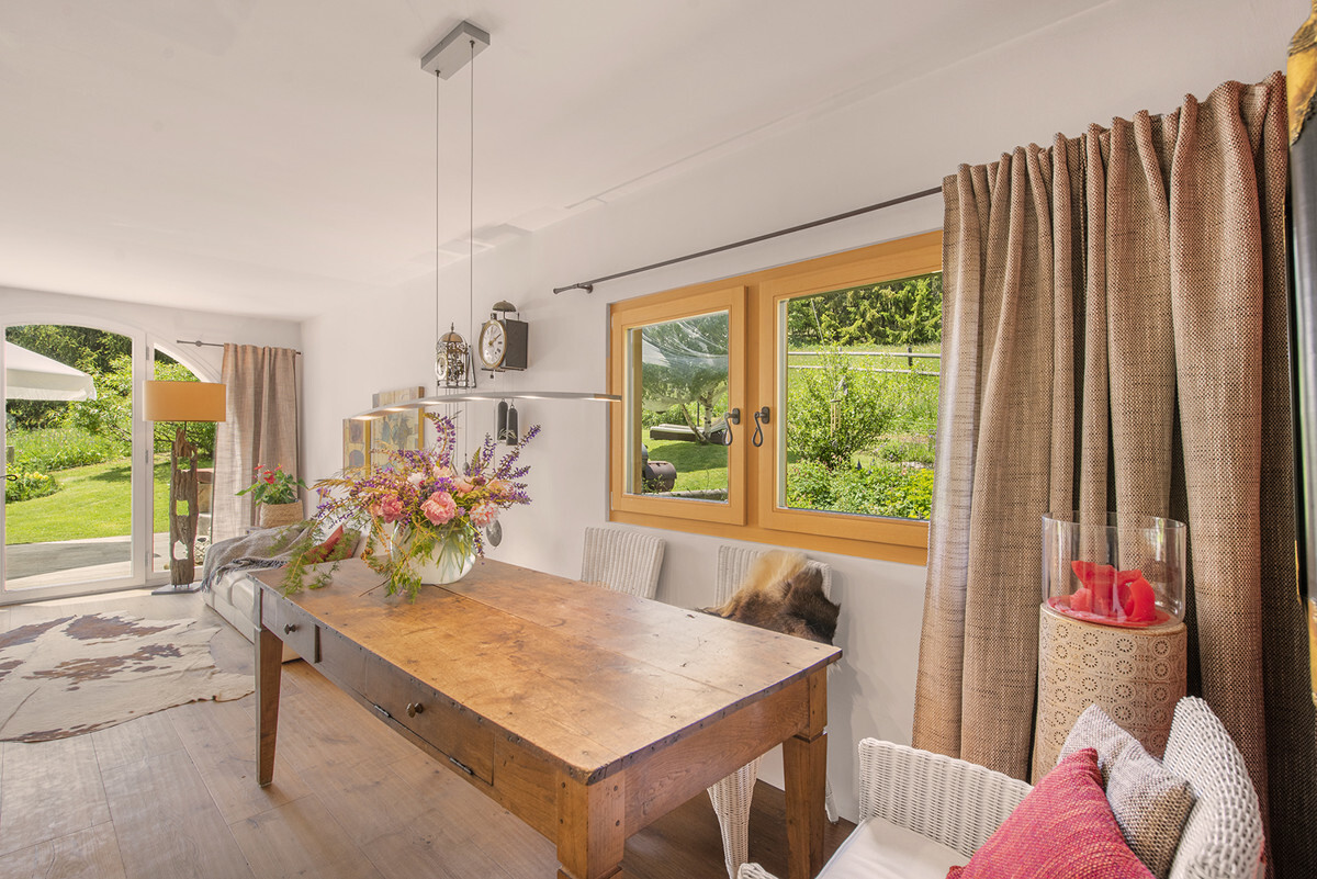 You will be fascinated when you go outside: the wooden terrace is surrounded by a well-tended garden area and a beautiful flower meadow.