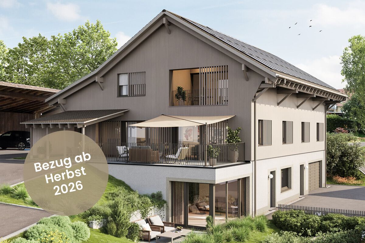 The 3.5-room apartment on the garden floor impresses with its spaciousness and well thought-out floor plan of around 80 m². Large windows provide a light-flooded ambience, while the high-quality interior fittings guarantee modern living at a high level. The open-plan living area leads directly into the private outdoor space with seating area and garden - an ideal retreat for relaxing hours in the countryside.
