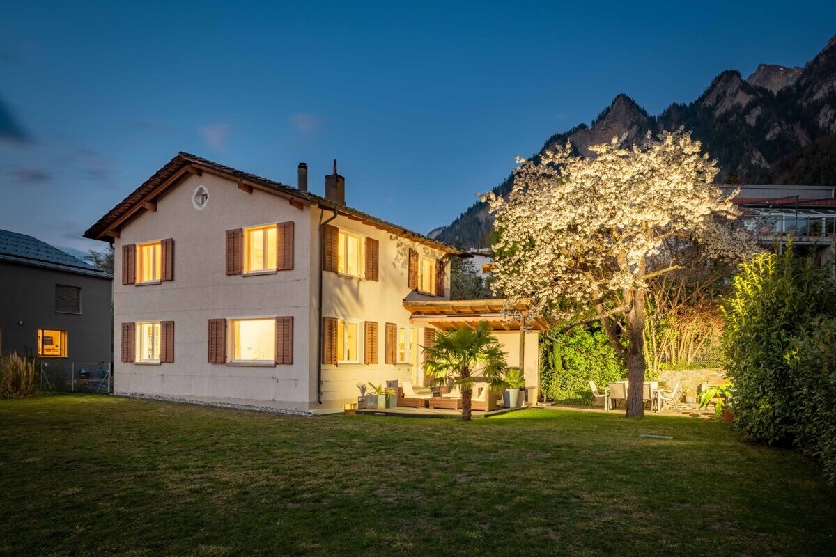 This detached residence in Chur is situated in one of the city's most sought-after residential areas. The Lürlibad neighborhood boasts quiet surroundings, ample sun throughout the day, and unobstructed views of the city and surrounding mountains. Enjoy a living experience that is a unique combination of tranquil idyll and proximity to the city.