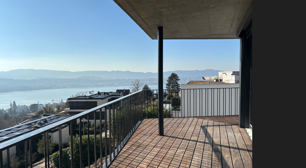 Modernes Stadthaus zum Kauf am Zürichberg mit Blick auf die Stadt Zürich