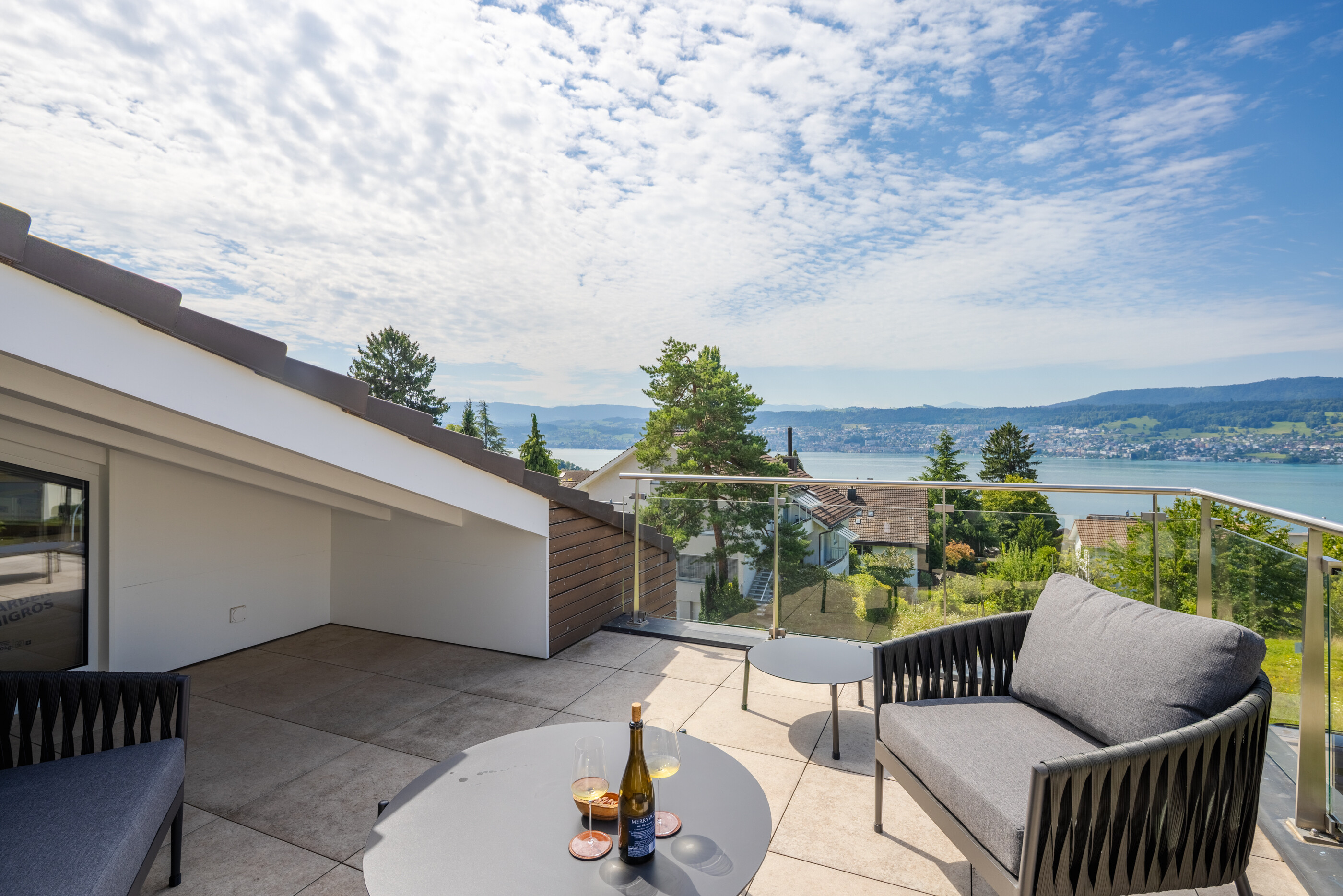 - Sonnenverwöhnte Terrasse mit Ausblick auf See und Alpen