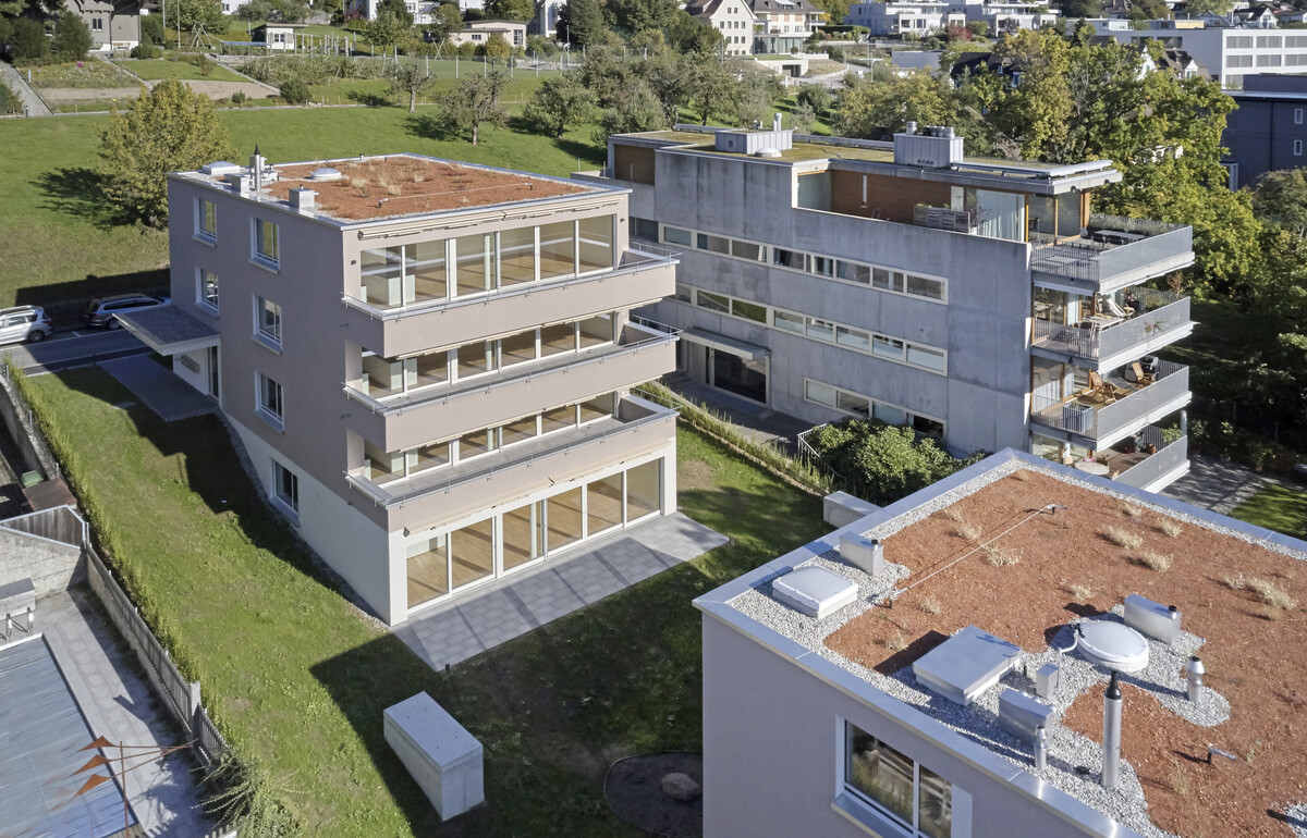 [objektbeschreibung] => Zur Erstvermietung stehen sieben Etagenwohnungen in zwei gleichwertigen Häusern. Haus A verfügt über vier, Haus B über drei Einheiten. Allesamt präsentieren sie attraktive, moderne Grundrisse mit grossen Fensterfronten und hellen Räumen.