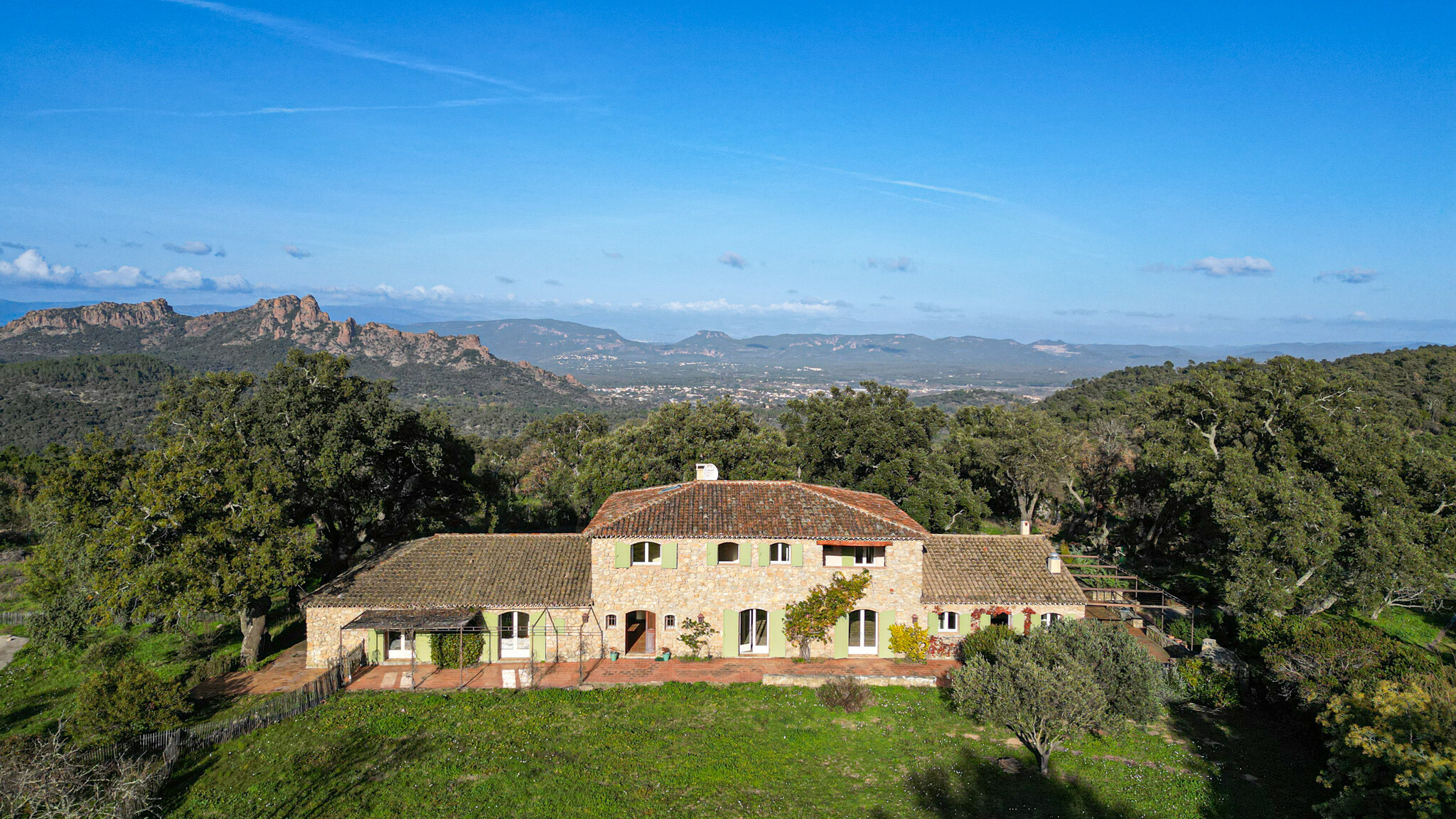 Diese exklusive Immobilie aus regionalem Naturstein gebaut, liegt nur 18 km vom Meer und rund 45 Minuten vom internationalen Flughafen Nizza entfernt. Eingebettet in das Massif der Maures, geniesst sie eine privilegierte Lage in geschützter Natur mit freiem Blick auf die umliegende Landschaft. Das 2023 vollständig renovierte Anwesen befindet sich in ausgezeichnetem Zustand und bietet ca. 478 m² Wohnfläche mit grosszügigen, lichtdurchfluteten Räumen dank Südausrichtung. Herzstück ist ein über 100 m² grosser Wohnbereich mit Kamin, ergänzt durch eine grosse Küche. Insgesamt stehen 9 Schlafzimmer zur Verfügung, jeweils mit eigenem Bad oder Duschbad und WC. Stauraum, Hauswirtschafts- und Technikräume im Untergeschoss runden das Raumangebot ab. In unmittelbarer Nähe befindet sich zudem ein charmantes Gästehaus aus Stein mit ca. 47 m². Das ca. 8 Hektar grosse Grundstück, davon 3 Hektar eingezäunt und park ähnlich gestaltet, ist geprägt von über 100 beleuchteten Korkeichen. Grosszügige Terrassen und ein aussergewöhnlich gestalteter Pool fügen sich harmonisch in die Landschaft ein. Ein eigener Brunnen (Forage) sorgt für Wasserautonomie. Garage, Carport und Stellplätze für bis zu 10 Fahrzeuge sind vorhanden. Diese seltene Immobilie eignet sich ideal als Haupt- oder Zweitwohnsitz sowie als exklusives Feriendomizil und vereint Ruhe, Natur und Eleganz in einzigartiger Weise. Die Immobilie - Exklusives Anwesen mit grossem Grundstück - Helle Wohnräume und viel Platz - Kürzlich vollständig renoviert