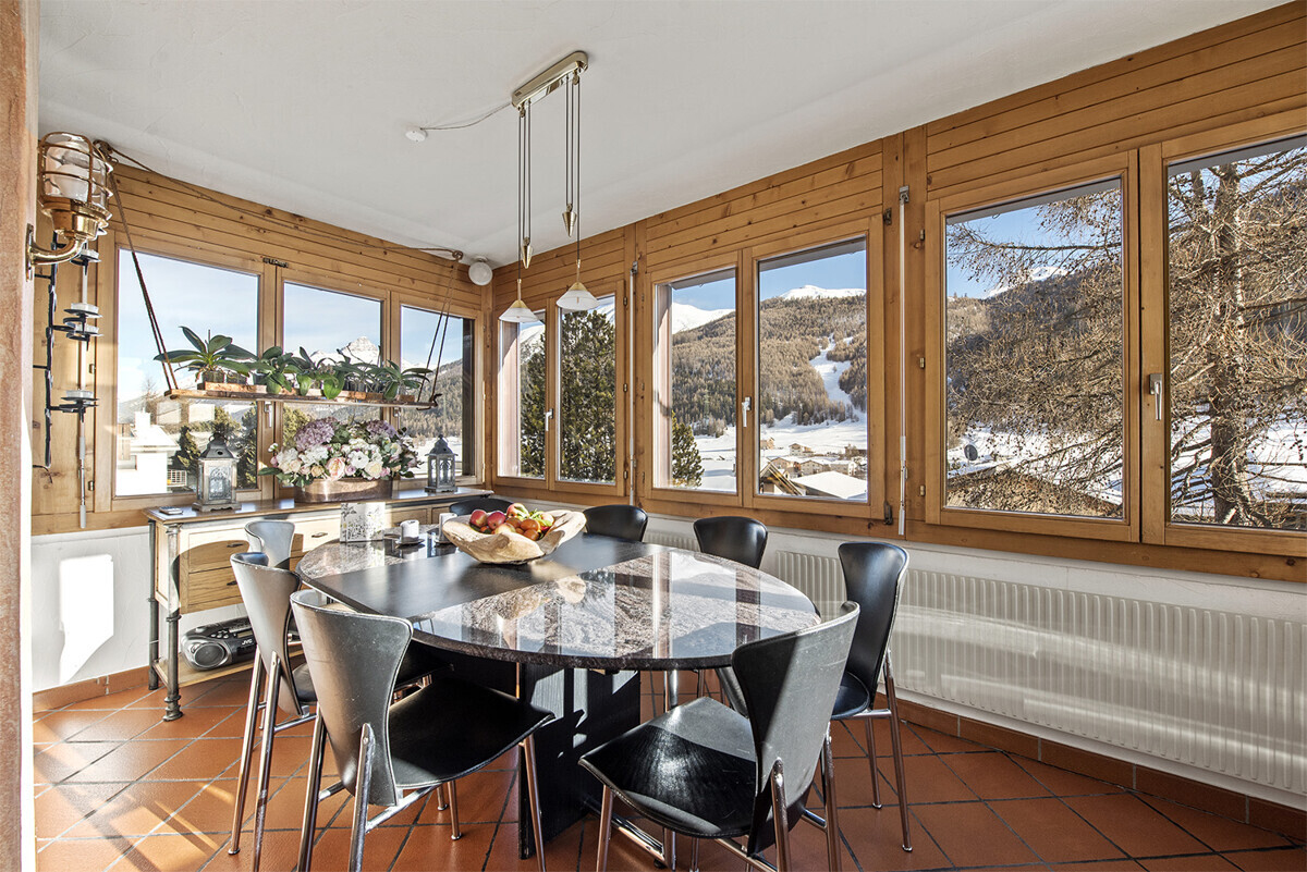 Was für eine Schönheit: Das stattliche Engadiner-Mehrfamilienhaus mit fünf Wohneinheiten wurde ca. im Jahre 1540 erbaut und 1987 aufwändig kernsaniert. In der Wohnung erlebt man eine angenehme Geborgenheit. Denn trotz der beeindruckenden 160 Quadratmeter Wohnfläche fühlt es sich dank raffinierter Aufteilung gemütlich an und die ganztägige Besonnung sorgt dafür, dass es überall angenehm hell ist. Eine wahre Wohlfühlwohnung, bei der auf der einen Seite die Räume für die gemeinsamen Stunden und auf der anderen die vier Zimmer, ein Bad mit Waschmaschine und daneben eine weitere Nasszelle mit Dusche liegen. Alle Schlafzimmer sind gross und mit hochwertigem Eichenparkett ausgelegt. Perfekte Entspannung findet man im charmanten Wohnzimmer mit dem zeitlosen Cheminée. Die Küche öffnet sich einladend zur dreiseitig mit grosszügigen Fensterfronten ausgestatteten und beheizten Veranda, auf der man gerne einmal die Zeit vergisst. Viel Stauraum steht im grossen Keller zur Verfügung. Gemeinschaftlich genutzt werden die Ski- und Veloräume, die Waschküche, der Garten mit Sitzplatz und die Aussenparkplätze. Die Immobilie: - Grosszügige 5.5-Zimmer-Ferienwohnung mit beheizter Veranda - An ganztägig besonnter Lage nahe an Einkauf, Skilift und öV - In 1540 erstelltem und 1987 kernsaniertem Engadinerhaus - Mit Cheminée, Waschmaschine und Eichenparkett in den Zimmern - Grosser Keller - Waschküche, Garten, Velo- und Skiraum und die Aussenparkplätze zur gemeinschaftlichen Nutzung - Heizung 2021 erneuert - Ca. 160 m² Wohnfläche - Ca. 29 m² Nebennutzfläche