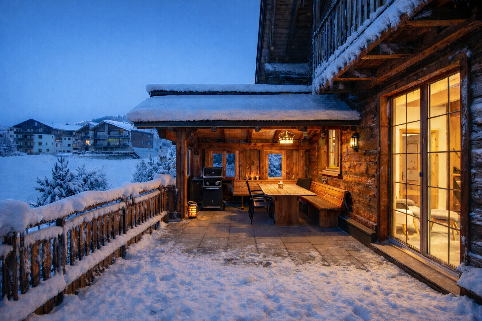 Besonderes Augenmerk gilt dem Aussenbereich der Wohnung. Die grosszügige Sonnenterrasse mit gedecktem und windgeschütztem Bereich schafft bei jedem Wetter eine wohnliche Verbindung nach draussen und erweitert den Wohnraum auf angenehme Weise. Sie lädt zum entspannten Verweilen ein und eröffnet einen schönen Blick in die umliegende Natur und die Bergwelt.