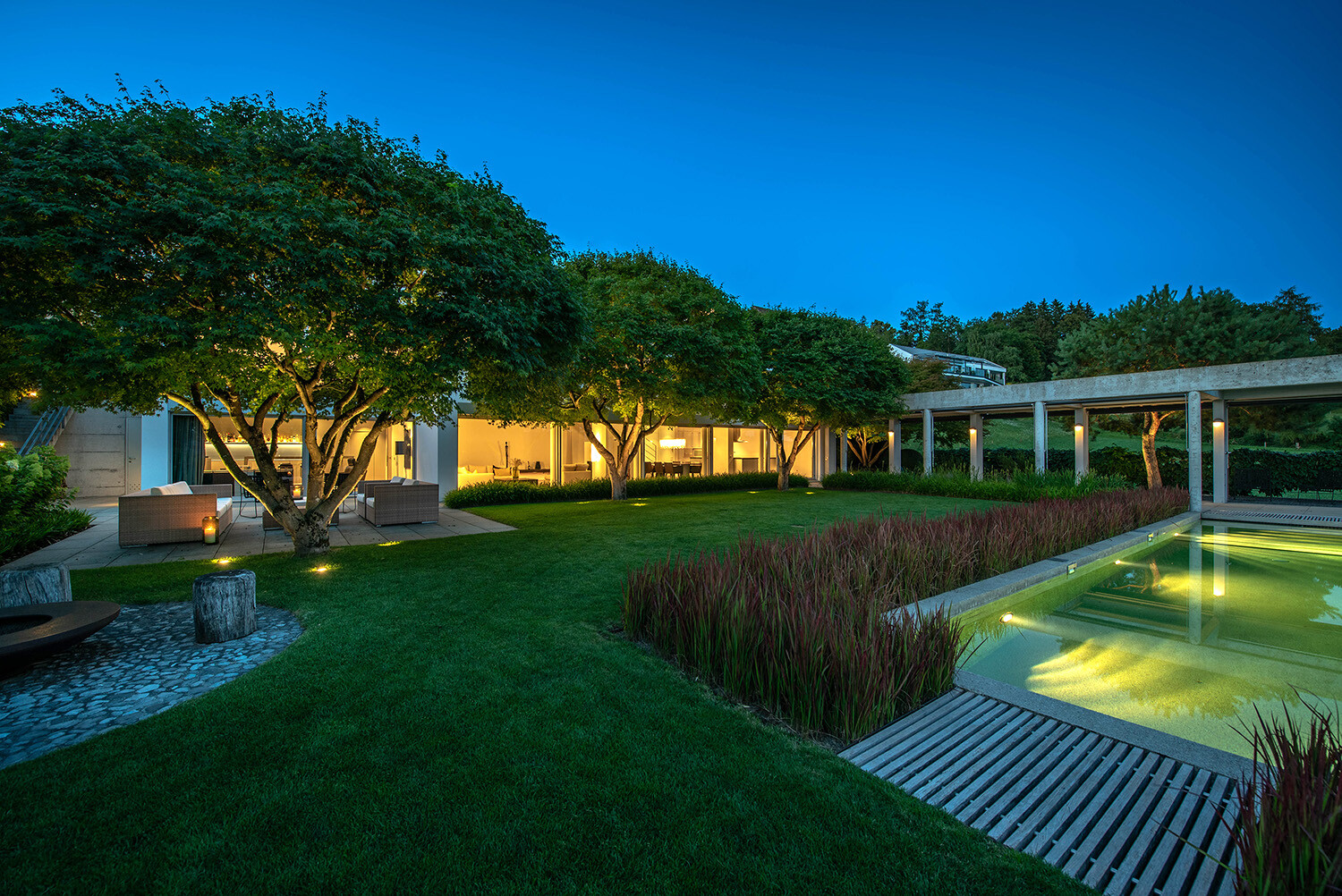 Diese aussergewöhnliche Liegenschaft in Boppelsen überzeugt durch eine gelungene Verbindung von zeitloser Architektur, durchdachtem Raumkonzept und stilvoller Eleganz. Entworfen vom Architekten Fausto Forni, überzeugt das Einfamilienhaus mit hohen Decken, offenen Räumen und einem flexiblen Grundriss. Die offen gestaltete Bulthaup Küche schliesst direkt an den hellen Wohn- und Essbereich mit Cheminée an und öffnet sich über raumhohe Schiebefensterfronten über die gesamte Hausbreite zum edel bepflanzten Garten mit Swimmingpool. Der Masterbereich mit Sauna, Dampfbad, Fitnesszone und grosser Ankleide bietet höchsten Komfort. Ein separates Studio mit Kochnische und WC kann bei Bedarf einfach erweitert werden und als charmante Einliegerwohnung genutzt werden. Besonders eindrucksvoll sind die ausgewählten Materialien : warme Holzböden, Natursteine und eine konsequent hochwertige Ausführung im Innen- und Aussenraum. Der Garten wurde vom Atelier Enea konzipiert und prägt mit japanischen Ahornbäumen, Bambus und wundervollen Hortensien das stilvolle Gesamtbild. Die Immobilie - Ca. 371 m² Wohnfläche - Hochwertige Materialisierung - Cheminée - Bulthaup Küche - Überdurchschnittliche Raumhöhen - Wellnessbereich mit Spa und Dampfbad - Wunderschöne Gartenanlage mit beheiztem Swimmingpool - Malerische Aus- und Weitsich - Ruhige, ganztags besonnte Lage - 2 Garagenplätze mit Elektroladestation