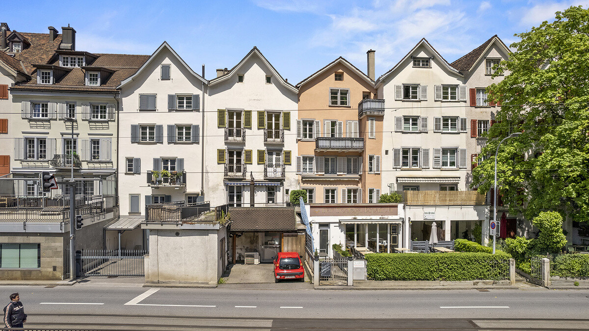 Aktuell sind die oberen Etagen auf zwei Wohnungen aufgeteilt. Die untere mit einer grossen Terrasse, die Maisonette-Wohnung darüber mit zwei Balkonen und der Keller im Untergeschoss ist riesig. All das benötigt eine umfassende Auffrischung und darum ist dieses Angebot ein Steilpass für einen Investor oder eine Unternehmerfamilie, die einen solchen Standort in der schönen Altstadt zu schätzen wissen.