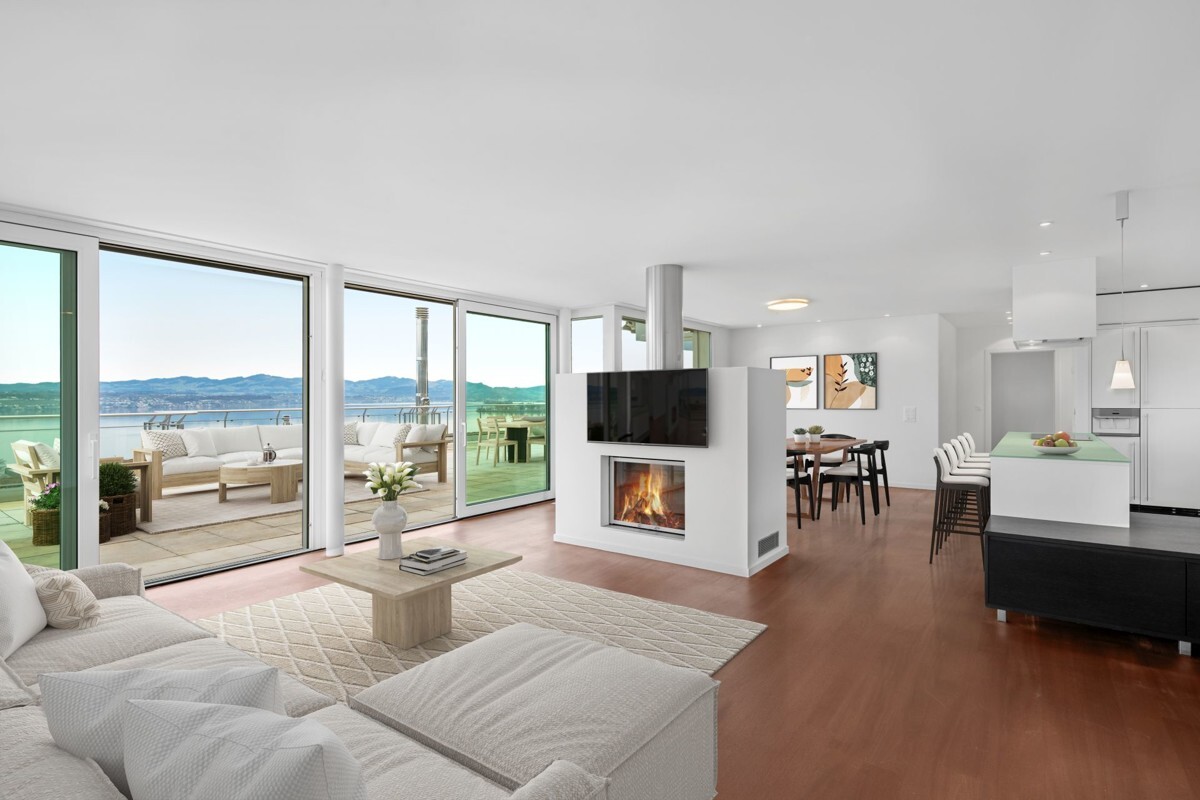 [objektbeschreibung] => In der charmanten Seegemeinde Richterswil vermieten wir an hervorragender Lage diese grosszügige und lichtdurchflutete Maisonette-Wohnung. Es handelt sich um die Oberste von vier Terrassenwohnungen und bietet fantastische Sicht auf den Zürichsee und die Glarner Alpen.